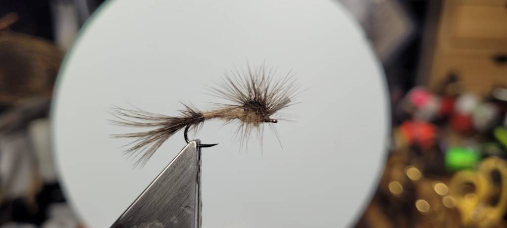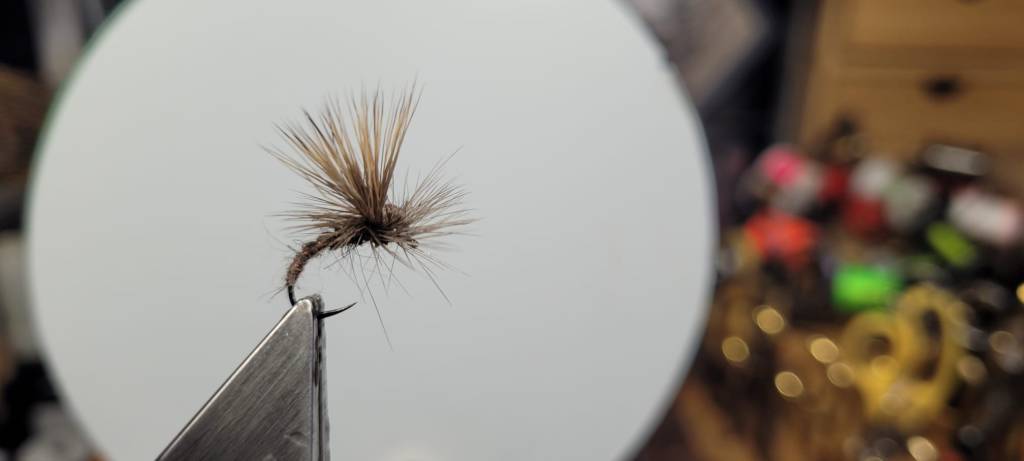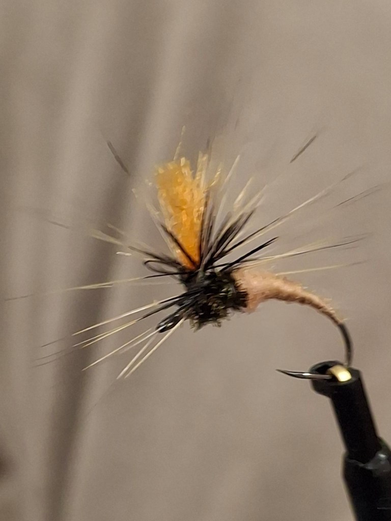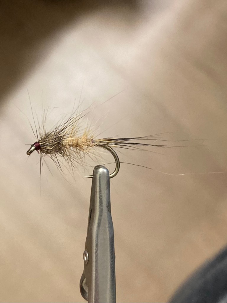 Wing: Comparadun Deer Hair. (tied like an elk hair caddis)