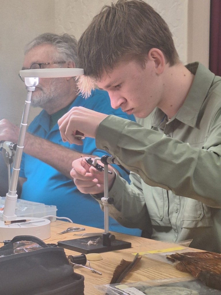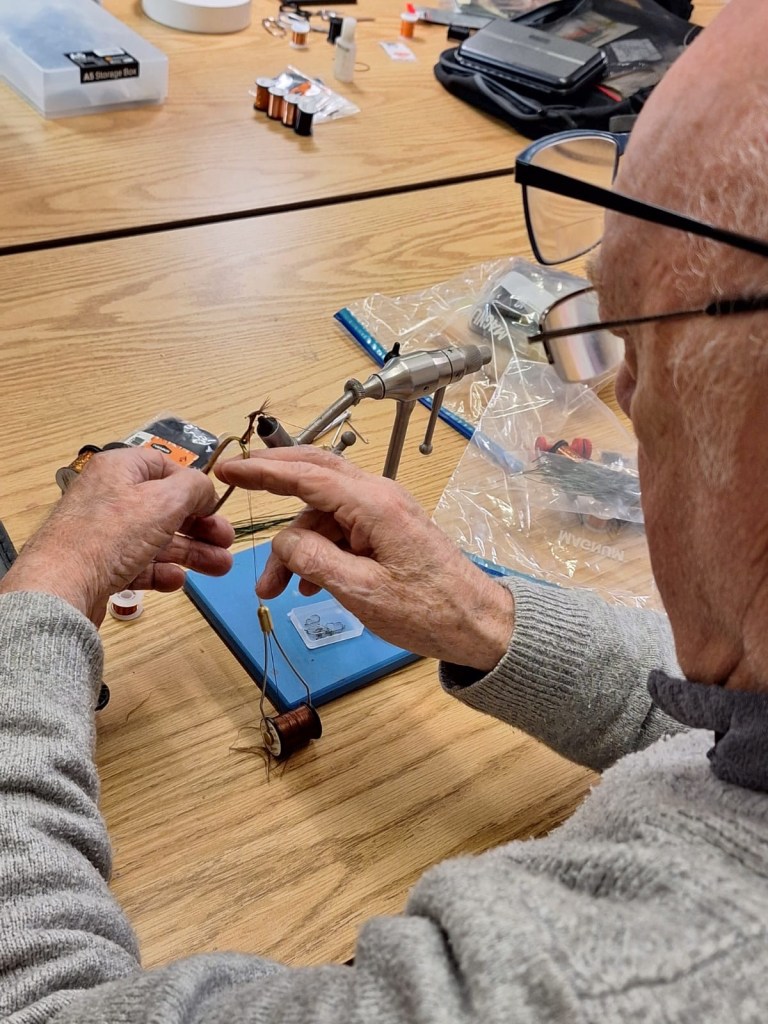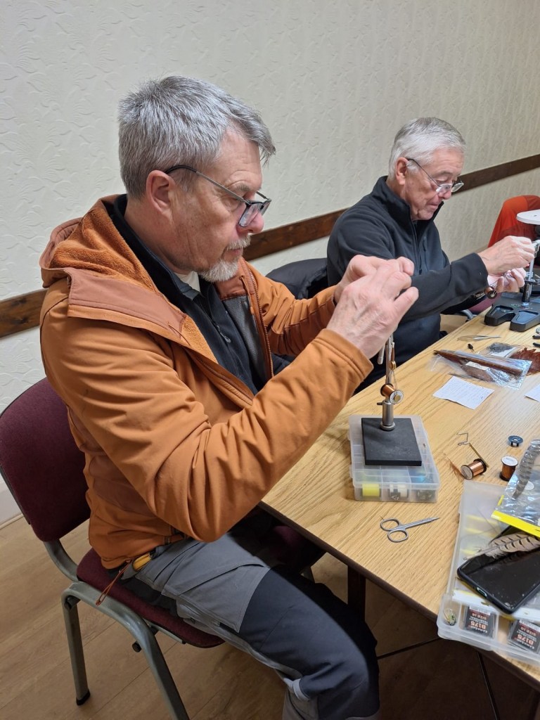 As you can see from the photos the tying was taken very seriously and when all flies were complete Les took all the entered flies which were labelled anonymously and gave each entry a close inspection. In the end there was a clear winner, well tied, well proportioned and deemed worthy of a place in anyone’s fly box. These had been tied by our newest and youngest member Alex, which was a tremendous achievement, so well done Alex! It is immensely encouraging to see young people taking up and excelling at fly tying.