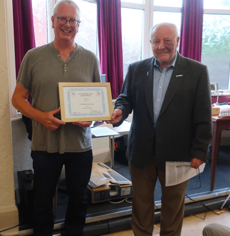 Nigel Rogers was a branch member for many years, shown here with the commemorative annual fly tying competition trophy, a mounted selection of spider flies tied by Nigel that were a great passion of his.